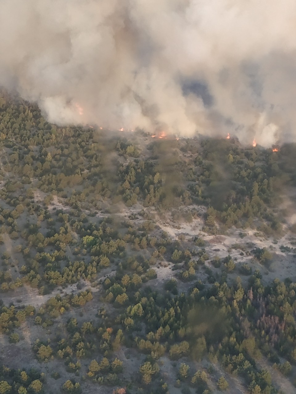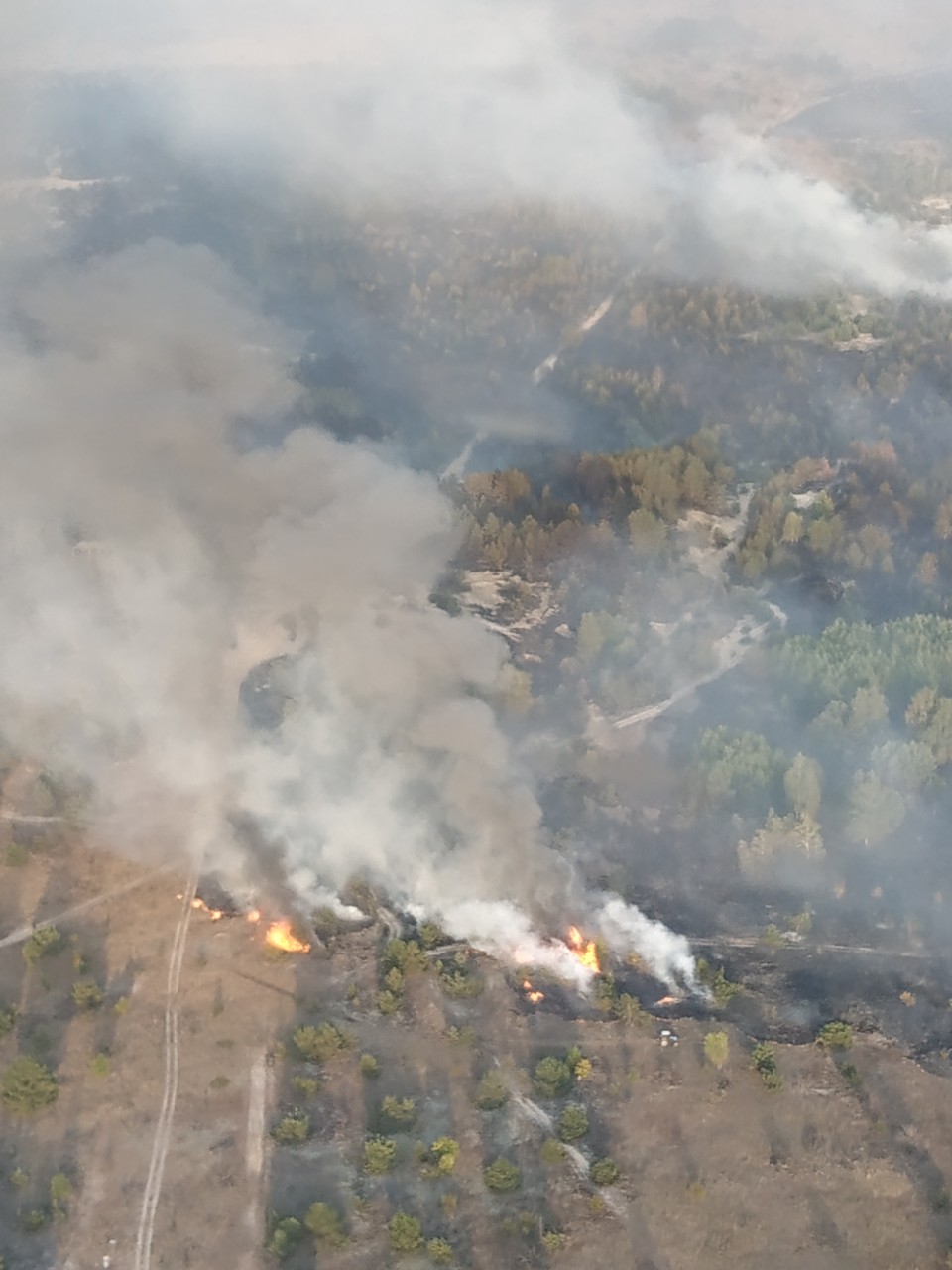 Работает авиация Специального авиационного отряда ГСЧС Украины г.Нежин. Привлечен самолет Ан-32П и вертолет Ми-8. По состоянию на 18:30 авиацией сделано 4 сбросы воды. Тушение пожара продолжается.