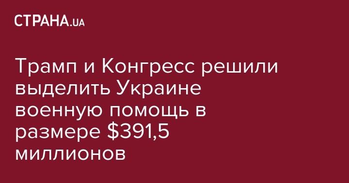 Трамп и Конгресс решили выделить Украине военную помощь в размере $391,5 миллионов