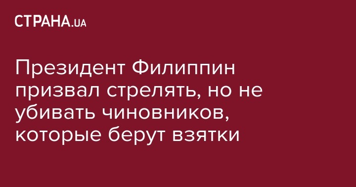 "Если государственный чиновник требует взятку, злоупотребляя положением, президент Дутерте призвал граждан стрелять в коррумпированного государственного служащего, но не убивать", - говорится в сообщении.