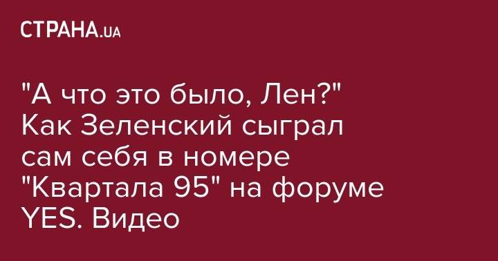 В пятницу, 13 августа во время закрытой части 16-го ежегодного форума YES, президент Украины Владимир Зеленский поучаствовал в выступлении "95 Квартала". Он появился на сцене вместе с актером Юрием Великим, который его пародирует и сыграл сам себя.