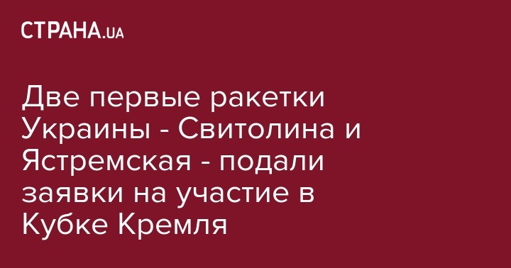 Две первые ракетки Украины - Свитолина и Ястремская - подали заявки на участие в Кубке Кремля