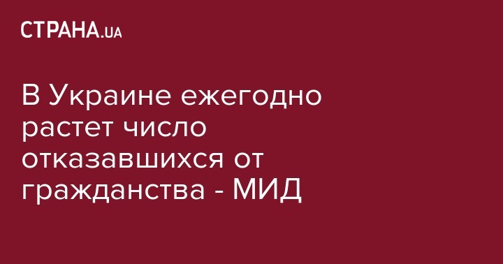 Согласно данным внешнеполитического ведомства, число отказавшихся от украинского гражданства растет с каждым годом. "В 2014 году гражданство Украины прекращено 5 тыс. 752 лицам. В течение 2015 украинское гражданство прекращено 6 тыс. 365 лицам", - говорится в ответе украинского МИД.