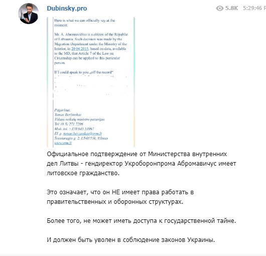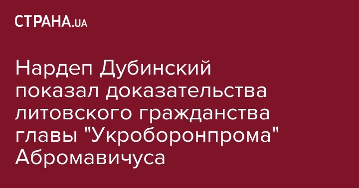 Нардеп Дубинский показал доказательства литовского гражданства главы "Укроборонпрома" Абромавичуса