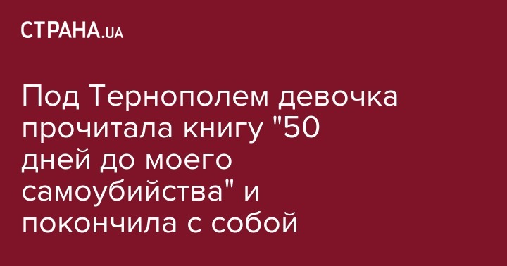 В Тернопольской области покончила с собой 14-летняя школьница, прочитавшая известный среди молодежи художественный роман про самоубийство. Об этом сообщают "Факты".