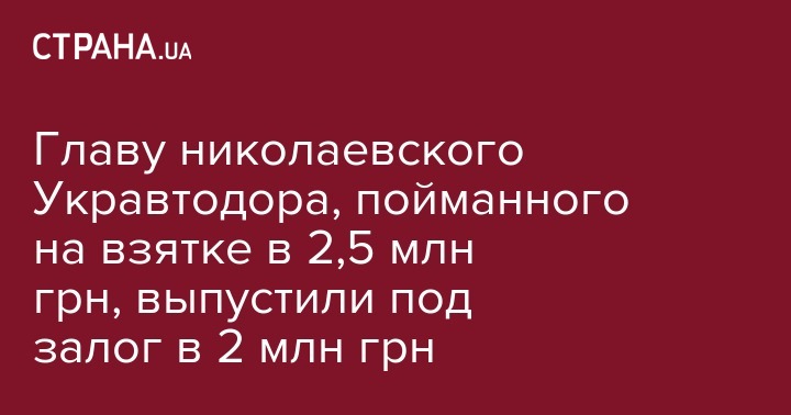Руководитель Службы автодорог в Николаевской области Андрей Максименко, задержанный за получение взятки, 16 сентября вышел под залог в размере почти 2 млн грн.