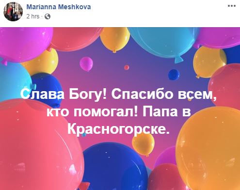 "Спасибо всем, кто помогал. Папа в Красногорске", – написала Мешкова.