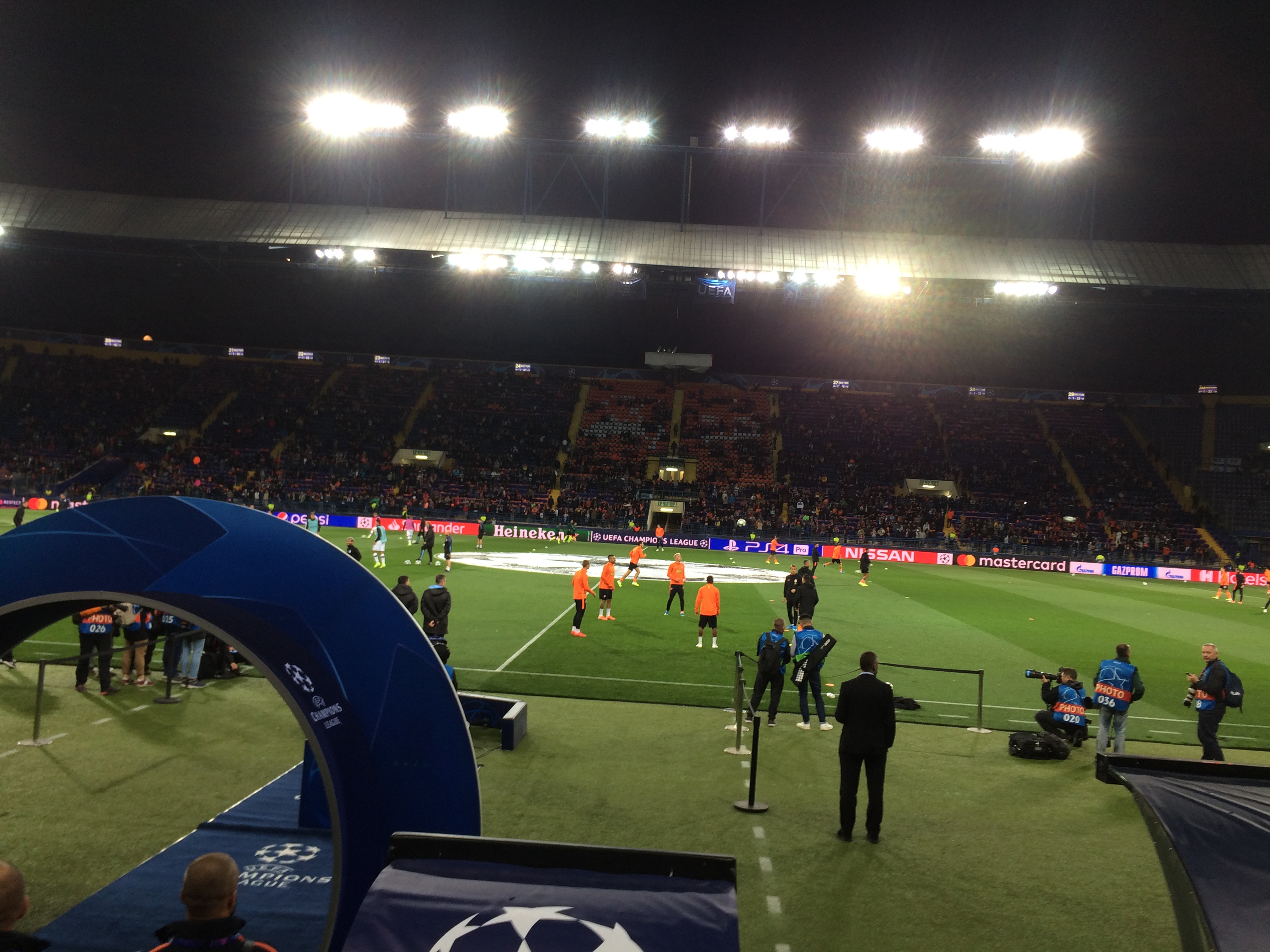 21:24 На стадионе активно разминаются футболисты Шахтера. Они сегодня впервые сыграют при полностью заполненных домашних трибунах в Лиге Чемпионов