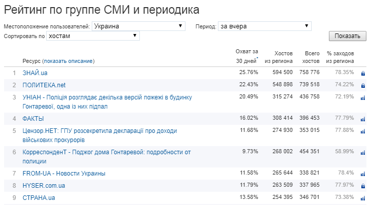 Отметим, что указанные сайты, на которые направляли пользователей страницы "фабрики троллей", являются лидерами рейтинга Вigmir.net украинских СМИ последних месяцев. Знай.ua и Politeka - на первых позициях, Hyser - в ТОП-10.