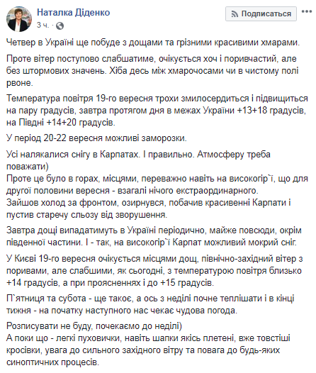 "Все испугались снега в Карпатах. И правильно. Атмосферу надо уважать. Однако это было в горах, местами, преимущественно даже на высокогорье, что для второй половины сентября - вообще ничего экстраординарного.