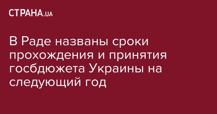 В Раде названы сроки прохождения и принятия госбдюжета Украины на следующий год