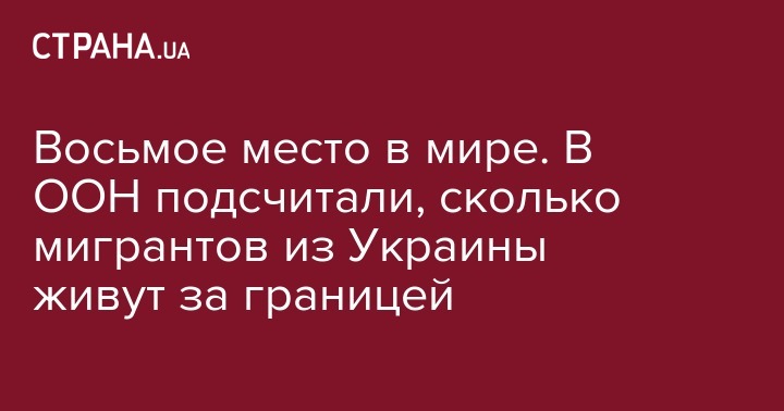 Отмечается, что в 2015-2019 годах число мигрантов из Украины выросло на 200 тысяч. В 1990-м году, по данным ООН, украинцев за рубежом было 5,5 миллиона, в 2010-м году – 5,4 миллиона, а в 2015-м году – уже 5,7 миллиона. Украина занимает восьмое место в мире по числу эмигрантов.