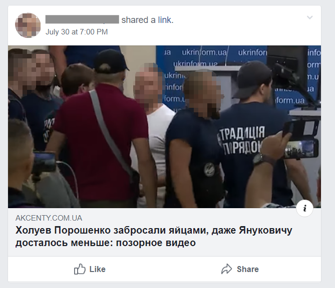 Предположительно это была скоординированная кампания, организаторы которой направляли людей с Facebook на сайты, которые позиционировались как новостные. В итоге были заблокированы аккаунты таких популярных ресурсов, как Znaj.ua, Politeka, Hyser.