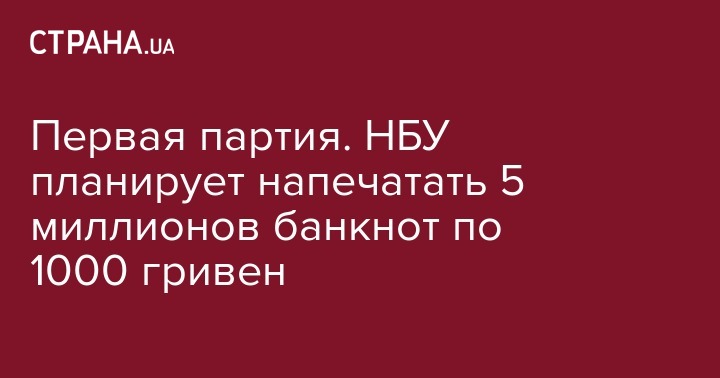 Первая партия. НБУ планирует напечатать 5 миллионов банкнот по 1000 гривен