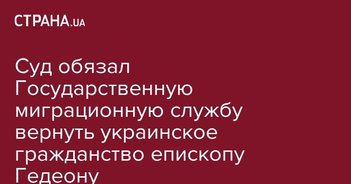 Окружной административный суд Киева обязал Государственную миграционную службу вернуть украинское гражданство архиерею Украинской православной церкви (Московского патриархата) епископу Макаровскому Гедеону (в миру - Юрий Харон). Об этом пишет theБабель.