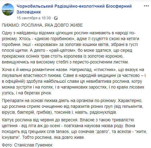 Экологи показали фото, как цветет в зоне отчуждения ЧАЭС целебное растение, живущее долго