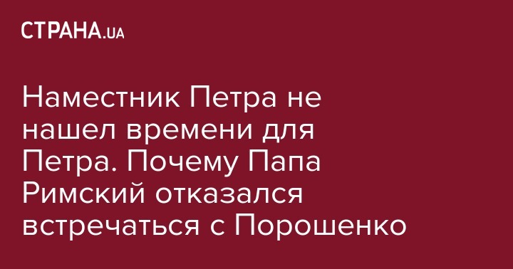 "Папский престол отказал Порошенко в личном общении с Франциском, заявив, что он уже не является главой государства и поэтому не имеет преимуществ для визитов к главе Ватикана. На ситуацию не смог повлиять и Святослав (Шевчук, глава УГКЦ - Ред.), который лично просил за Порошенко", - рассказывает собеседник "Страны".