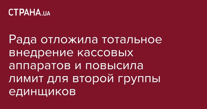 В пятницу, 20 сентября, Верховная Рада во втором чтении приняла законопроекты о фискализации расчетных операций и о "кэшбеке" с поправками об отсрочке введения кассовых аппаратов с 2020 года на 2021 год и повышении годового лимита дохода для второй группы плательщиков единого налога с нынешних 1,5 миллиона гривен до 2,5 миллиона гривен.