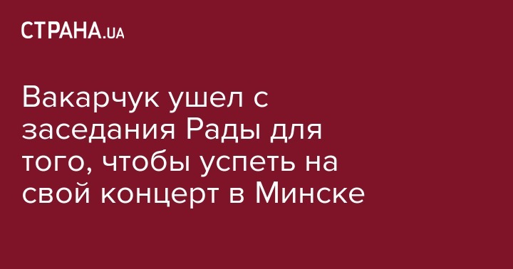 Депутат Верховной Рады от фракции "Голос" Святослав Вакарчук ушел из Верховной Рады до закрытия заседания для того, чтобы успеть к 20:00 на концерт в Минске. Об этом передает корреспондент "Українських Новин"
