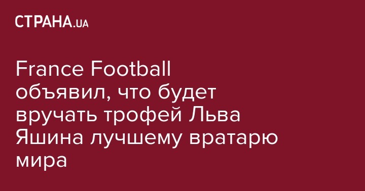 Издание France Football объявило, что отныне каждый год лучшему вратарю мира будет вручаться трофей имени Яшина.