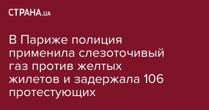 Больше ста демонстрантов были задержаны полицией в Париже во время ставшей уже традиционной антиправительственной акции "желтых жилетов". Об этом сообщается в микроблоге Twitter префектуры французской столицы.