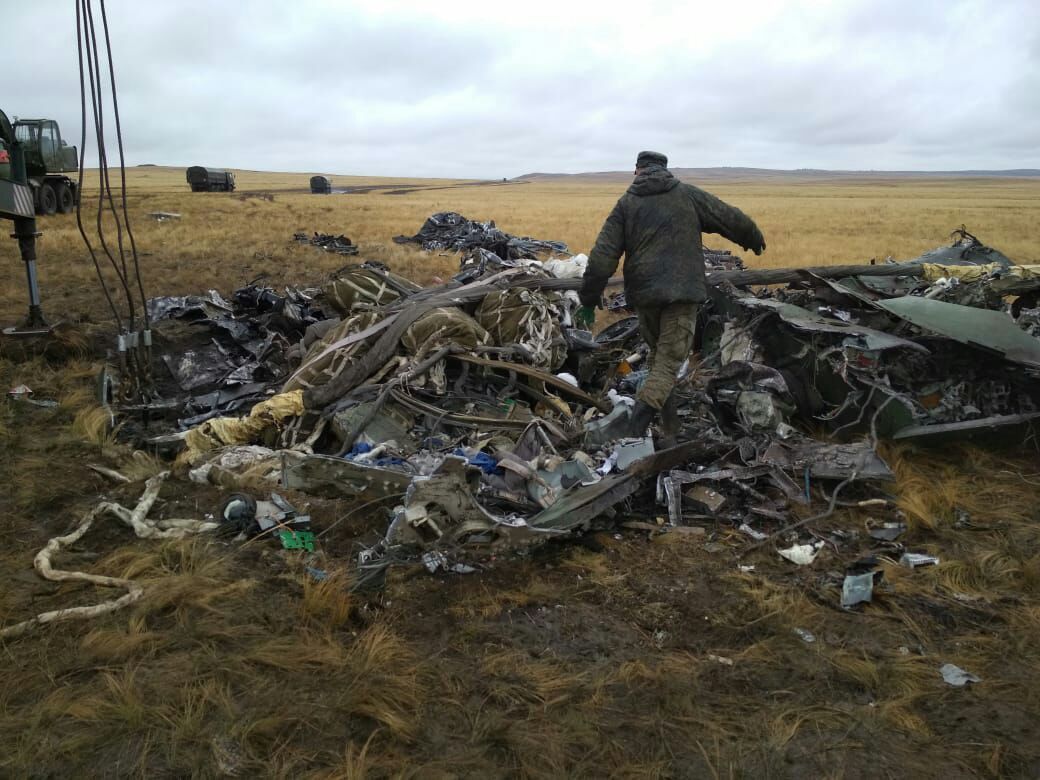 На снимках видно, что от двух боевых машин, которые, по данным российского Минобороны, разбились из-за отказавших парашютных систем, практически ничего не осталось. Их десантировали с самолетов Ил-76.