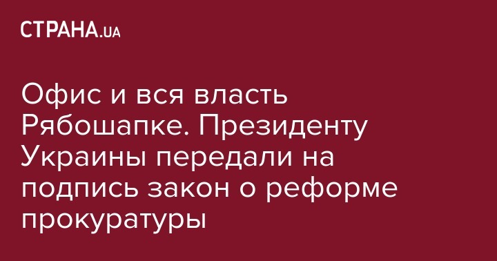 Законопроект № 1032 о реформировании органов прокуратуры Украины, ранее принятый Радой в целом, подписан спикером Дмитрием Разумковым и передан на подпись президенту Украины Владимиру Зеленскому.