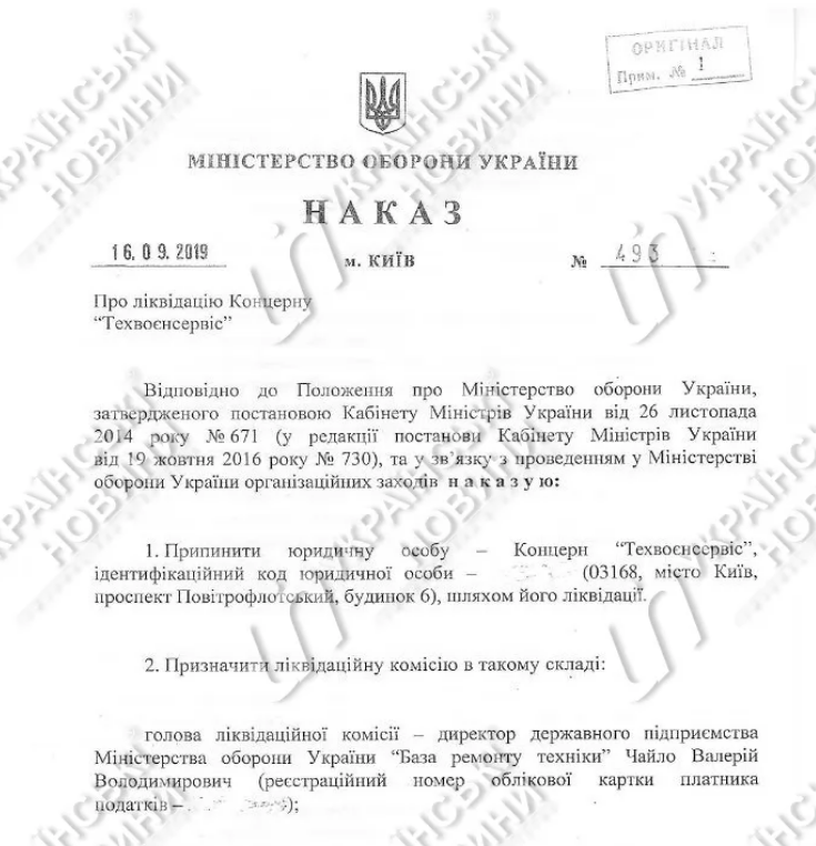 "Прекратить юридическое лицо - концерн "Техвоенсервис", - сказано в документе.