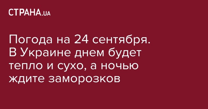 Погода на 24 сентября. В Украине днем будет тепло и сухо, а ночью ждите заморозков