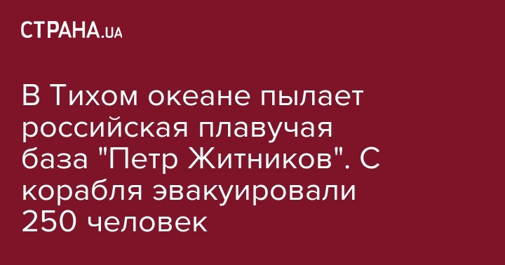 В Тихом океане пылает российская плавучая база "Петр Житников". С корабля эвакуировали 250 человек
