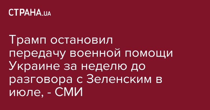 "Дональд Трамп приказал и. о. главы своей администрации Мику Малвани придержать почти $400 млн военной помощи для Украины минимум за неделю до телефонной беседы в июле с президентом Украины, во время которой, по сообщениям, он давил на него, чтобы тот провел расследование против сына бывшего вице-президента Джо Байдена", - уверяют источники.