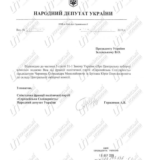 16 сентября свои предложения внесли фракции "Европейская солидарность" и "Голос". "Евросолидарность" предложила двух кандидатов - бывших депутатов Рады от "Блока Петра Порошенко" Александра Черненко и Юрия Буглака.