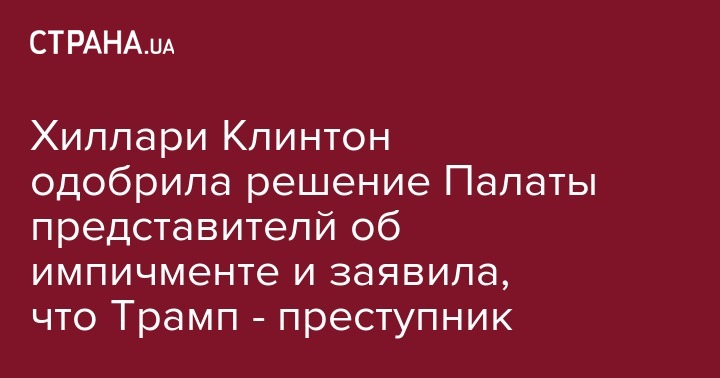 Экс-госсекретарь США Хиллари Клинтон полностью одобряет и поддерживает решение Палаты представителей Конгресса США о начале рассмотрения вопроса об импичменте для американского президента Дональда Трампа. Об этом пишет People.