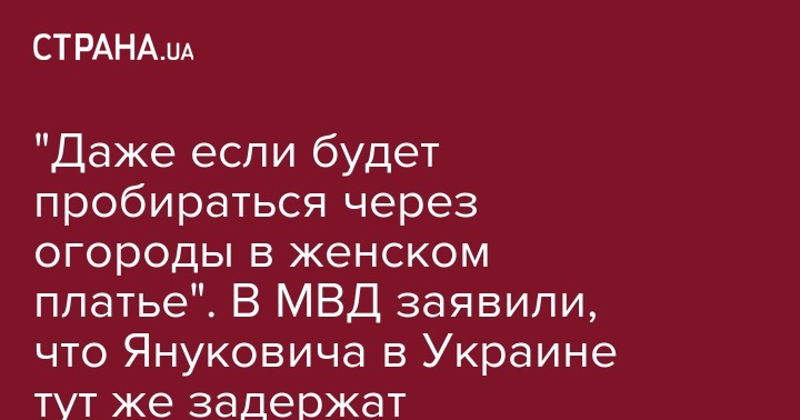 "Если он (Янукович - Ред.) будет где-то через огороды, тихонько вечером в женском платье пробираться - я думаю, он тоже попадет в руки правоохранительных органов почти сразу, потому что вся страна его очень ждет", - сказал Владимир Мартыненко.