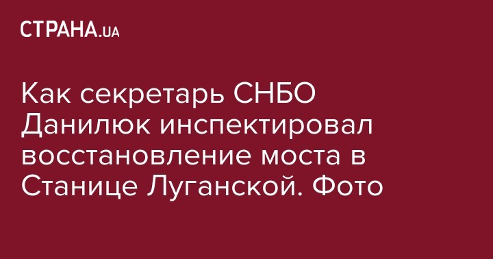 Секретарь Совета национальной безопасности и обороны Александр Данилюк заявил, что восстановление моста на линии разграничения с неподконтрольной территорией в Станице Луганской должно быть завершено в кратчайшие сроки. Об этом сообщает пресс-служба СНБО.