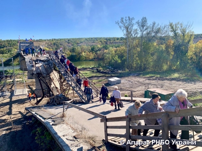 Данилюк сообщил, что, по его мнению, ремонт моста должен завершиться как можно быстрее, потому что ежедневно более 10 тысяч человек переходят через него, рискуя здоровьем и жизнью. Также секретарь СНБО побывал в пгт Золотое и заслушал информацию о ситуации на участках разведения войск.
