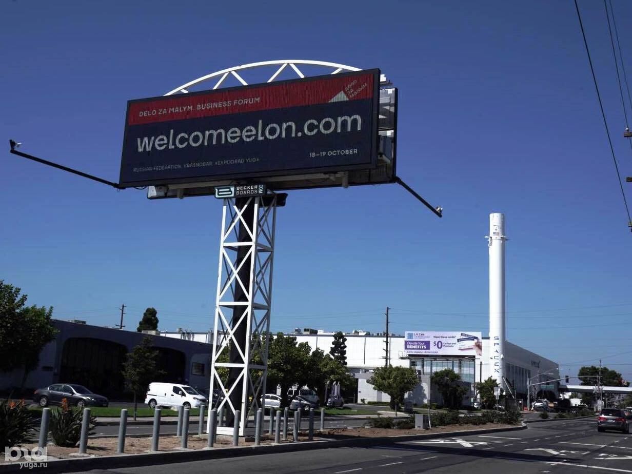 В Калифорнии, возле офиса компании SpaceX в городе Хоторн появился билборд с надписью "Kak tebe takoe, Elon Musk?". Таким образом основателя SpaceX и Tesla Илона Маска пригласили на бизнес-форум "Дело за малым" в Краснодаре.