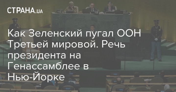 Львиную долю своей речи Зеленский посвятил опасности Третьей мировой войны.По апокалиптичности его речь была похожа на выступление шведской активистки Греты Тунберг
