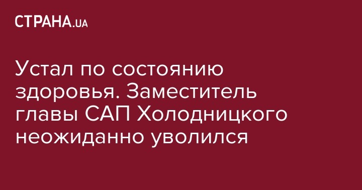 Устал по состоянию здоровья. Заместитель главы САП Холодницкого неожиданно уволился