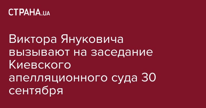 Экс-президента Украины Виктора Януковича вызывают на заседание Апелляционного суда в Киеве 30 сентября. Об этом со ссылкой на судебную повестку, опубликованную в "Урядовом курьере", сообщает 112 Украина.