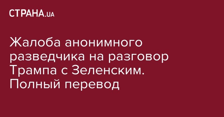 Жалоба анонимного разведчика на разговор Трампа с Зеленским. Полный перевод
