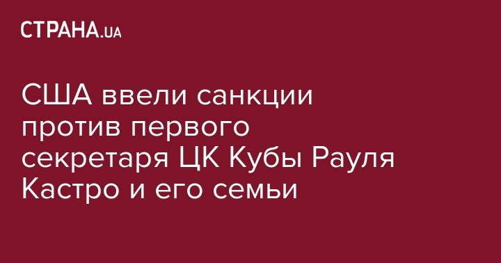 США ввели санкции против первого секретаря ЦК Кубы Рауля Кастро и его семьи