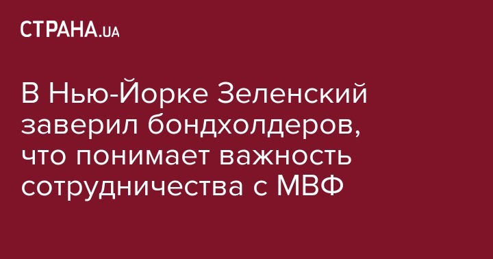 Вчера, 26 сентября, президент Украины Владимир Зеленский, перед переговорами с генсеком ООН, провел в Нью-Йорке встречу с бондхолдерами (держателями гособлигаций Украины - Ред.) и представителями рейтинговых агентств, на которой отметил важность сотрудничества нашей страны с Международным валютным фондом.