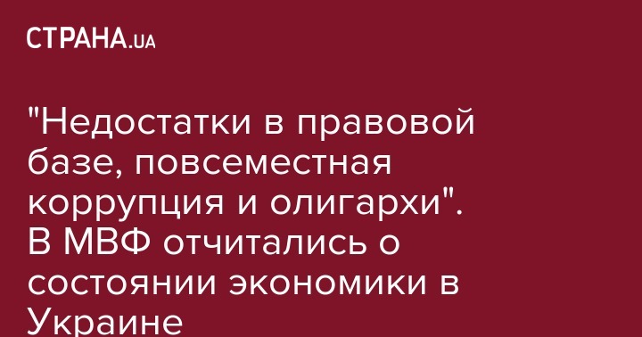 Миссия Международного валютного фонда по итогам работы в Украине 12 - 26 сентября констатировала, что рост экономики в Украине остается слишком низким из-за повсеместной коррупции и доминировании в ней госпредприятий и олигархов. Об этом сказано в отчете МВФ, обнародованном на сайте организации