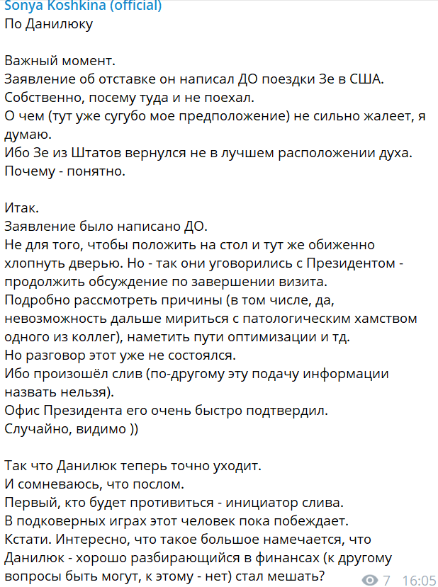 По Данилюку важный момент. Заявление об отставке он написал ДО поездки Зе в США.
