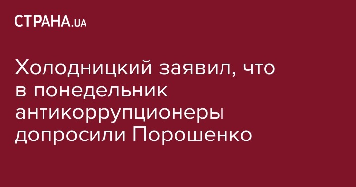 Холодницкий заявил, что в понедельник антикоррупционеры допросили Порошенко