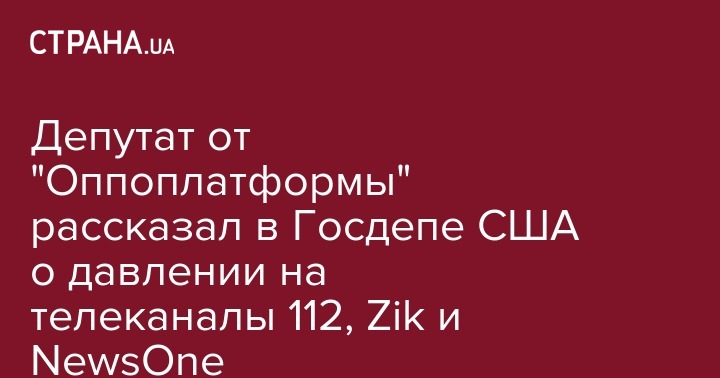 Депутат от "Оппоплатформы" рассказал в Госдепе США о давлении на телеканалы 112, Zik и NewsOne