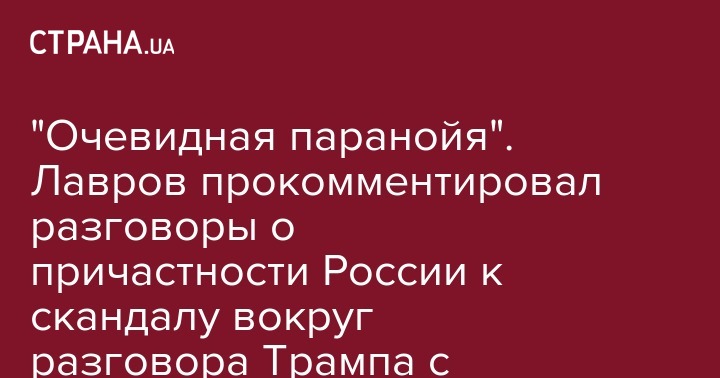 Сергей Лавров сказал, что разговоры о том, что Россия может быть причастна к скандалу вокруг телефонного разговора между президентом Украины Владимиром Зеленским и президентом США Дональдом Трампом, "очевидная паранойя".
