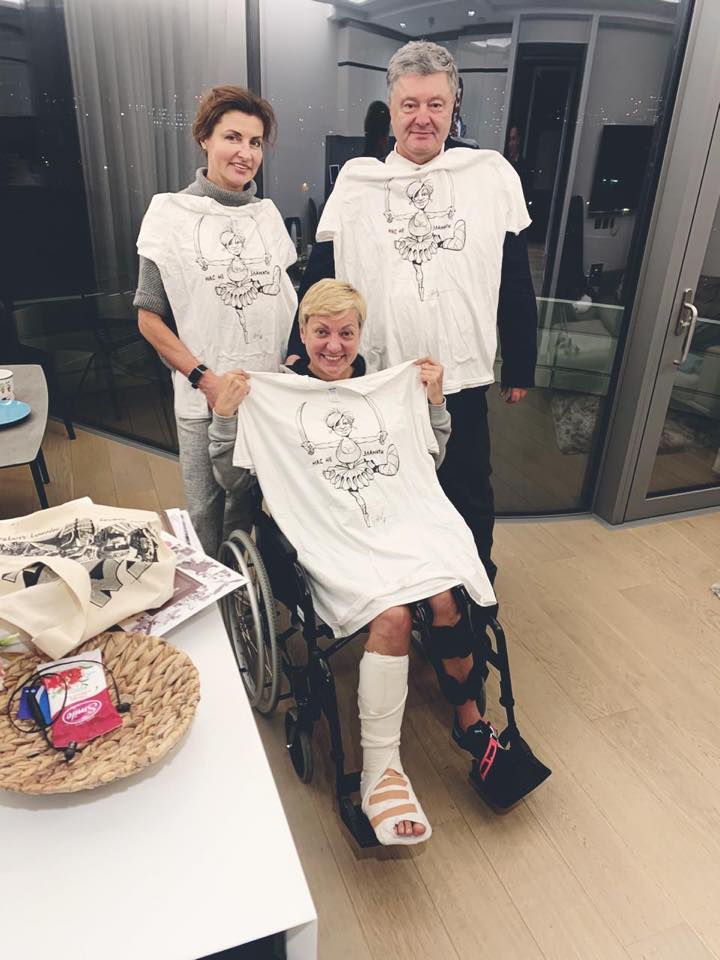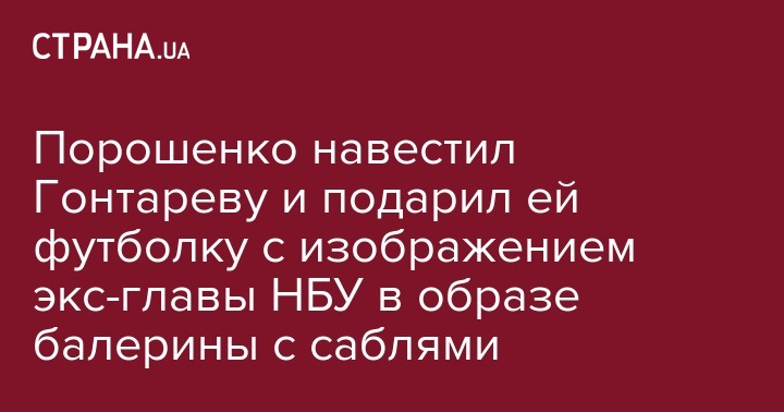 Порошенко навестил Гонтареву и подарил ей футболку с изображением экс-главы НБУ в образе балерины с саблями