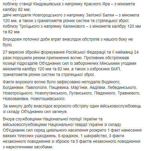 - дважды неподалеку Новгородского с направления Железной Балки - из миномета 120 мм, а также из гранатометов различных систем и стрелкового оружия; вблизи Троицкого с направления Калинового - из минометов калибра 120 мм и 82 мм.