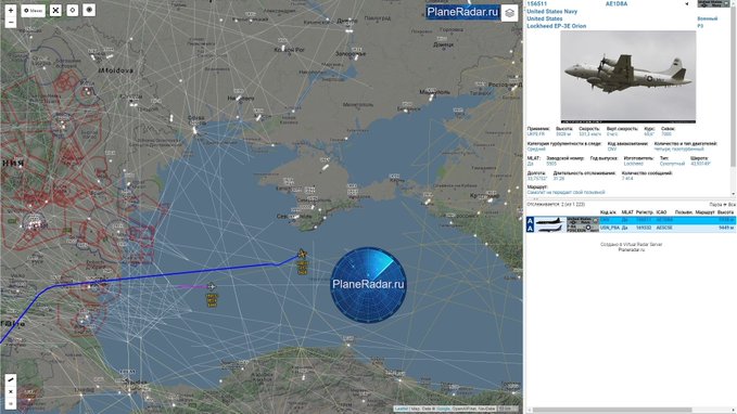 Также самолет Boeing P-8A Poseidon с бортовым номером 169332 взлетел с авиабазы НАТО Сигонелла в Италии и полетел в акваторию Черного моря. Около 12 часов дня он приступил к разведывательной операции. Судно несколько раз облетело район вблизи южного и юго-западного побережье Крыма. На это у него ушло более двух часов.